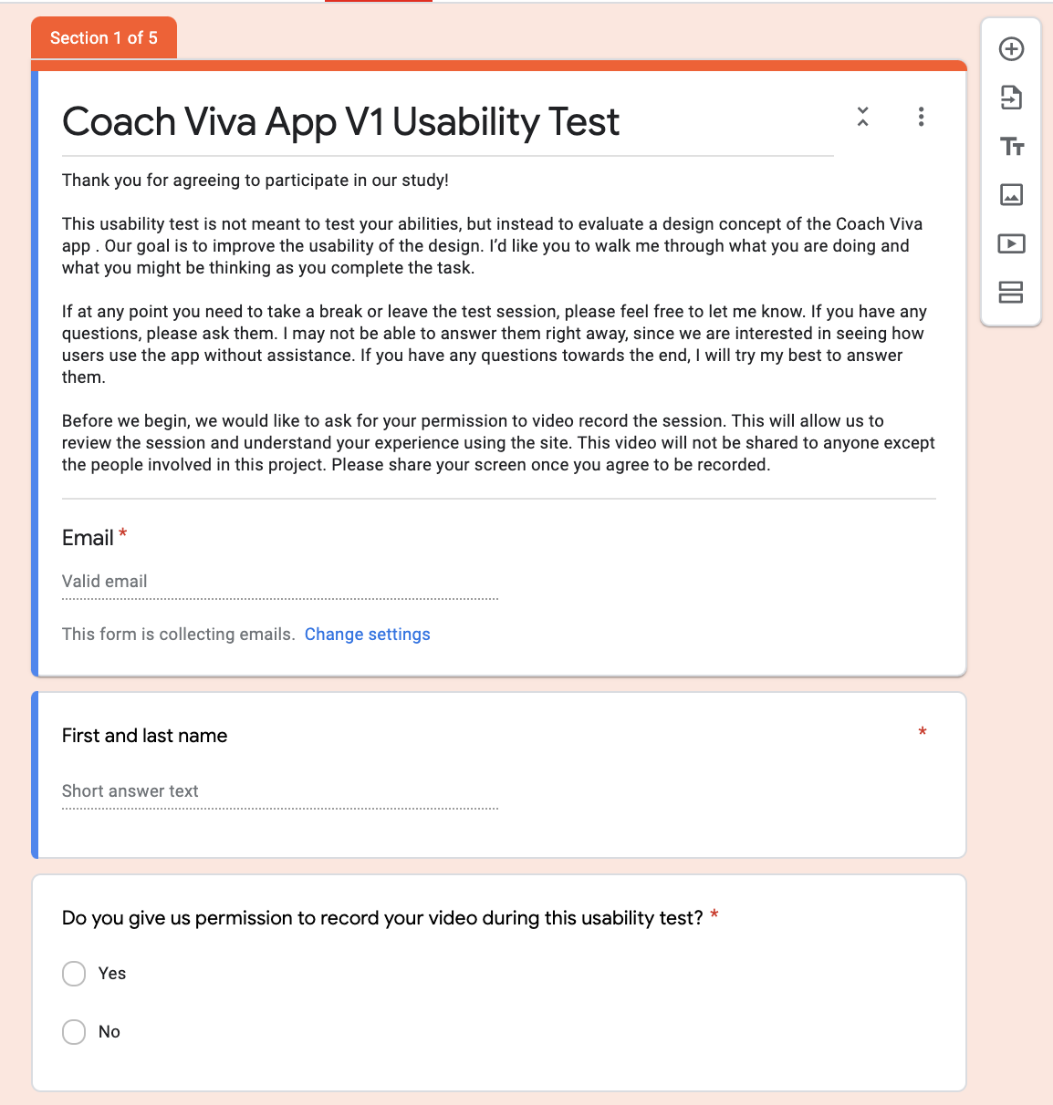This was a part-time pro bono role. I provided a mobile application concept to scale Coach Viva to onboard more customers, and provided a repeatable usability testing system for the co-founders