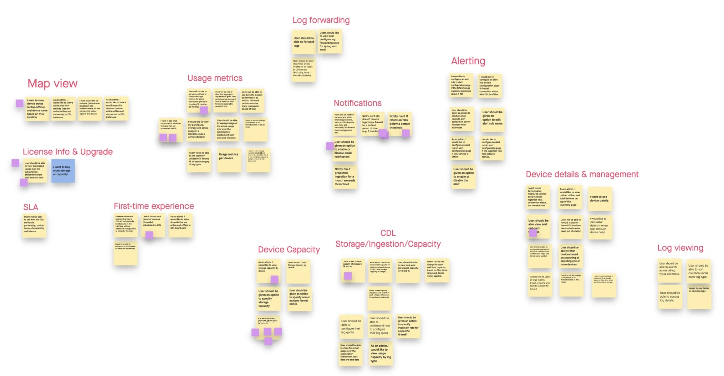 I lead a workshop where product managers and sales engineers wrote down common customer needs that they’ve heard from interviews, and cluster them into relevant categories. At the end of this session, we voted on the features that should be prioritized. This helped us align on product goals, and it also helped me get a head start on how the information architecture could look like.