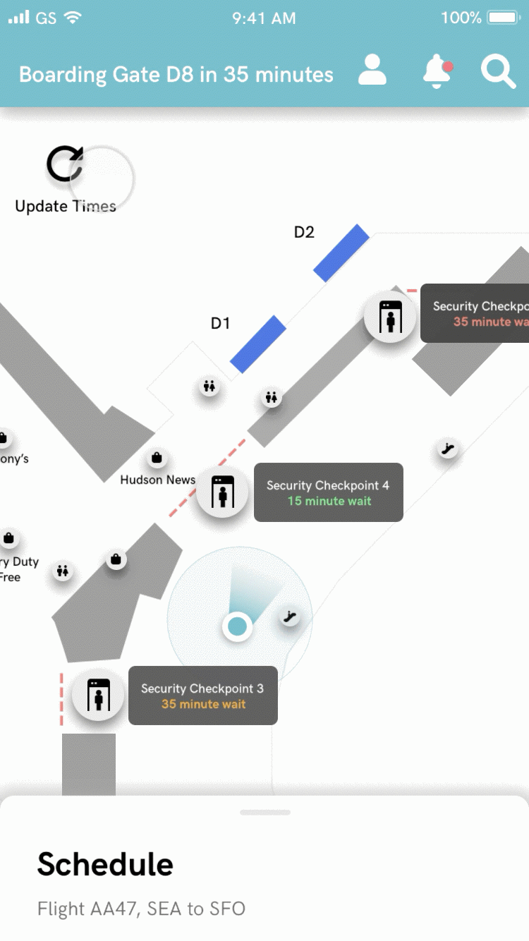 Reducing security line stress was challenging, but we still wanted users to have a sense of certainty as to which security line they should go to. This way they can better manage their time and feel more prepared to go through TSA lines.